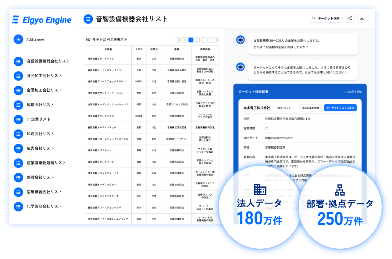 製造業に特化した180万社のデータベース
