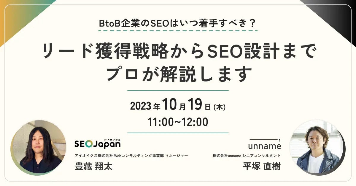 【リード獲得戦略からSEO設計までプロが解説します】SEO Japan@アイオイクスが株式会社unnameと無料ウェビナーを10/19(木)共同開催