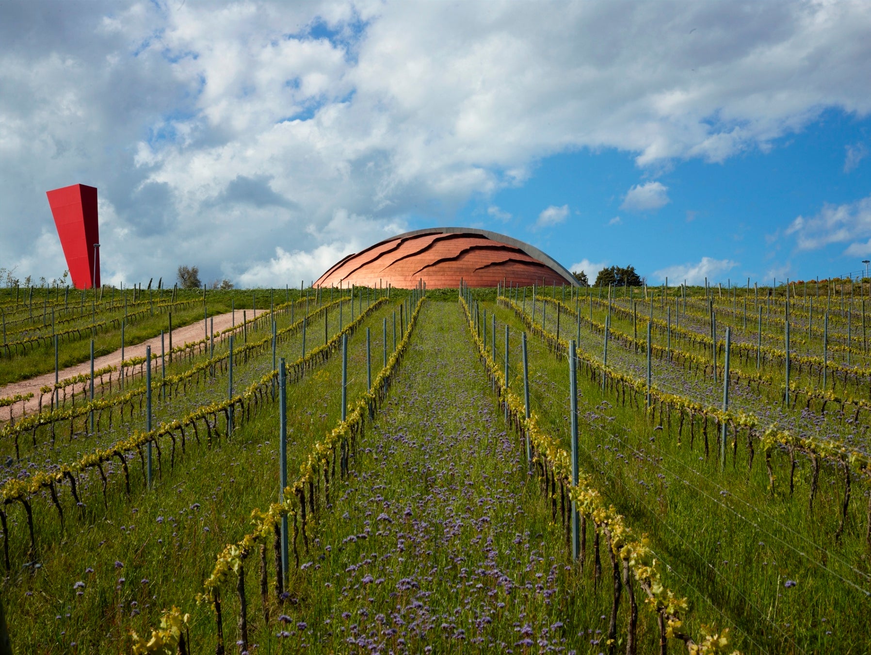 ワイナリーを手がけたのは、イタリアを代表する彫刻家アルナルド・ポモドーロ氏。「カラパーチェ」と名付けられた作品は、世界で唯一、人が入れてワインが造れる”彫刻”として、その美しさと共に有名です。