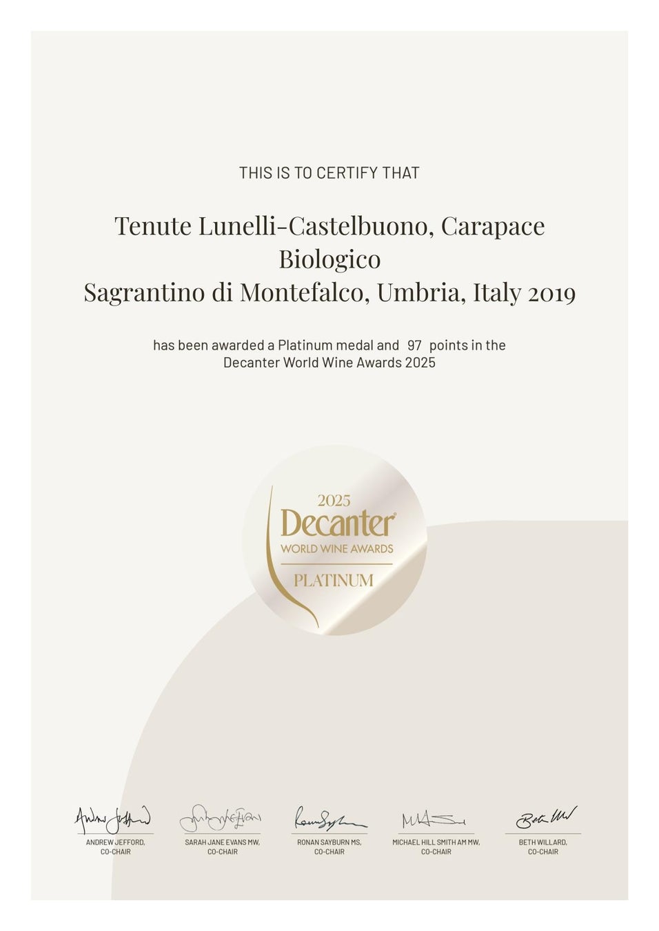 テヌータ・カステルブオーノが、世界最大の国際ワインコンテスト「デキャンター・ワールド・ワイン・アワード2025」にてプラチナを受賞!