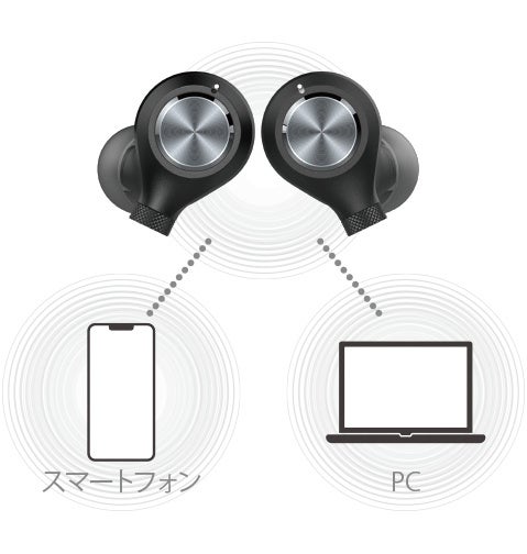 また、ワイヤレス使用時は、ビジネスシーンや家事中に便利な「片耳モード」、同時に2台の端末と接続できる「マルチポイント」などの機能を搭載しております。
