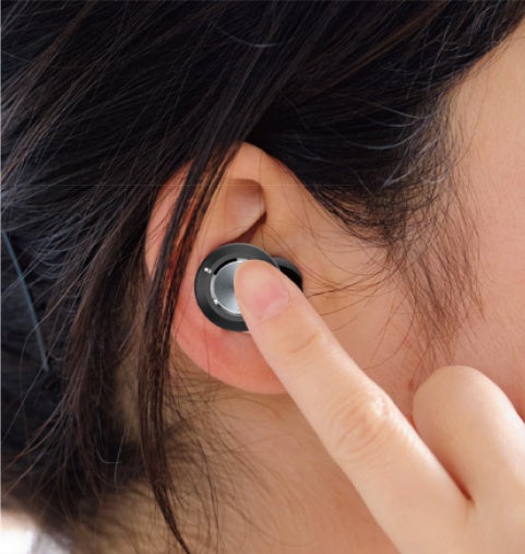 ワイヤレスイヤホンのタッチセンサーに触れることで、電源のオン/オフ、再生/停止、曲送り/曲戻し、音量の上げ/下げなど、装着したまま様々な操作ができます。