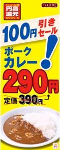 ・ポークカレー 並(473Kcal)390円→290円 大盛(845Kcal)490円→390円
