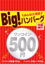 ・ビッグハンバーグ定食(デミソースまたはおろしソースで) 590円→500円