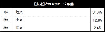 1位:短文(78.8%) 2位:中文(13.1%) 3位:スタンプのみ(3.5%)。