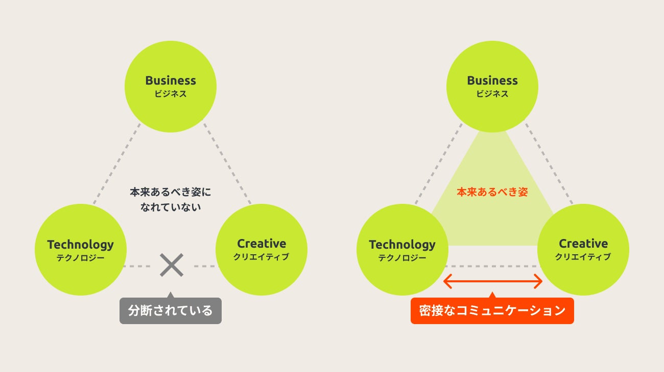 - 高品質なサービスを提供するために、デザインとテクノロジーの担当者が密接にコミュニケーションを取り、効率的に進行できる