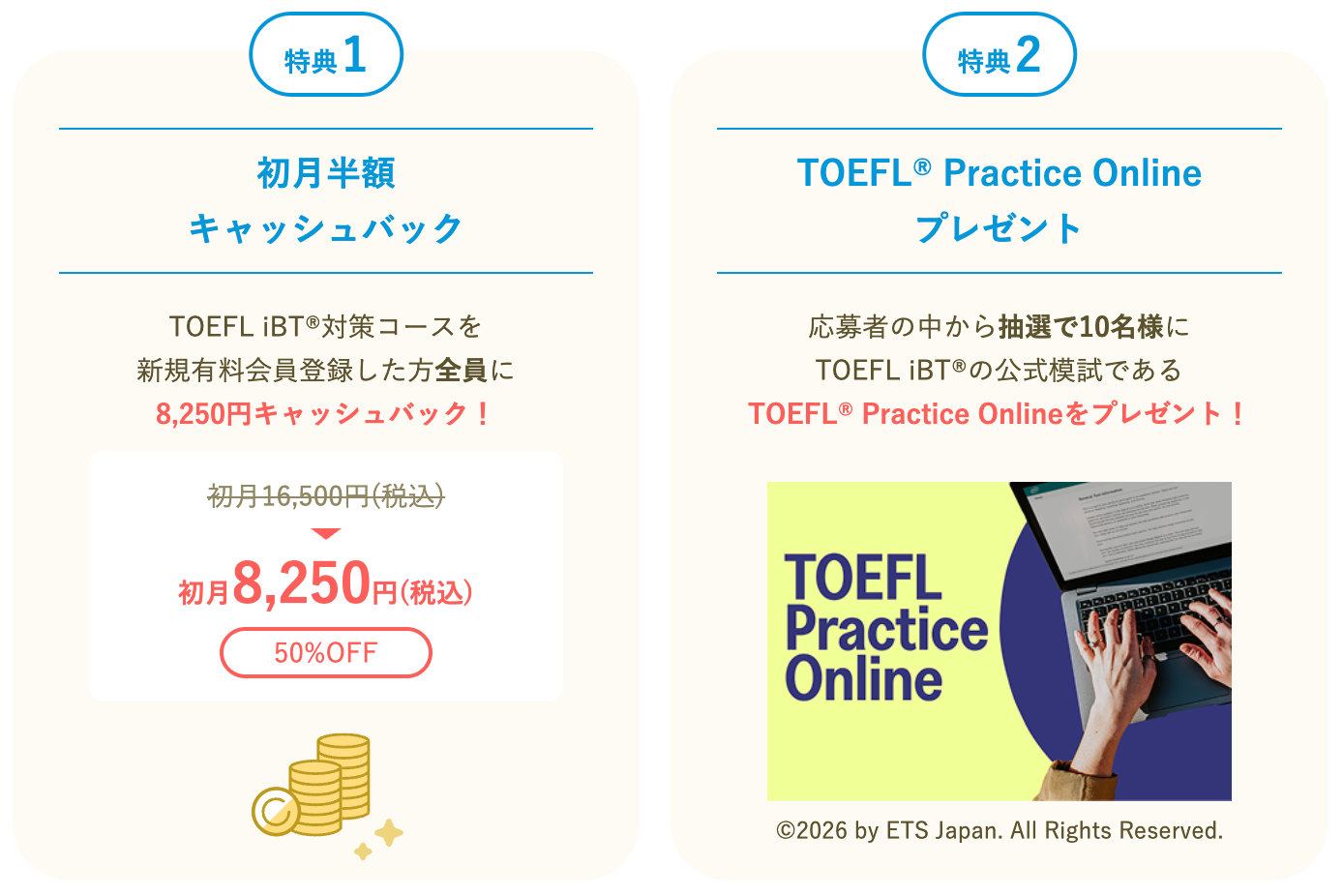 今年も「TOEFL®学習に取り組む皆さまをサポートしたい」という共通の想いのもと、ETS Japanと共同でのキャンペーン第3弾を開催いたします。