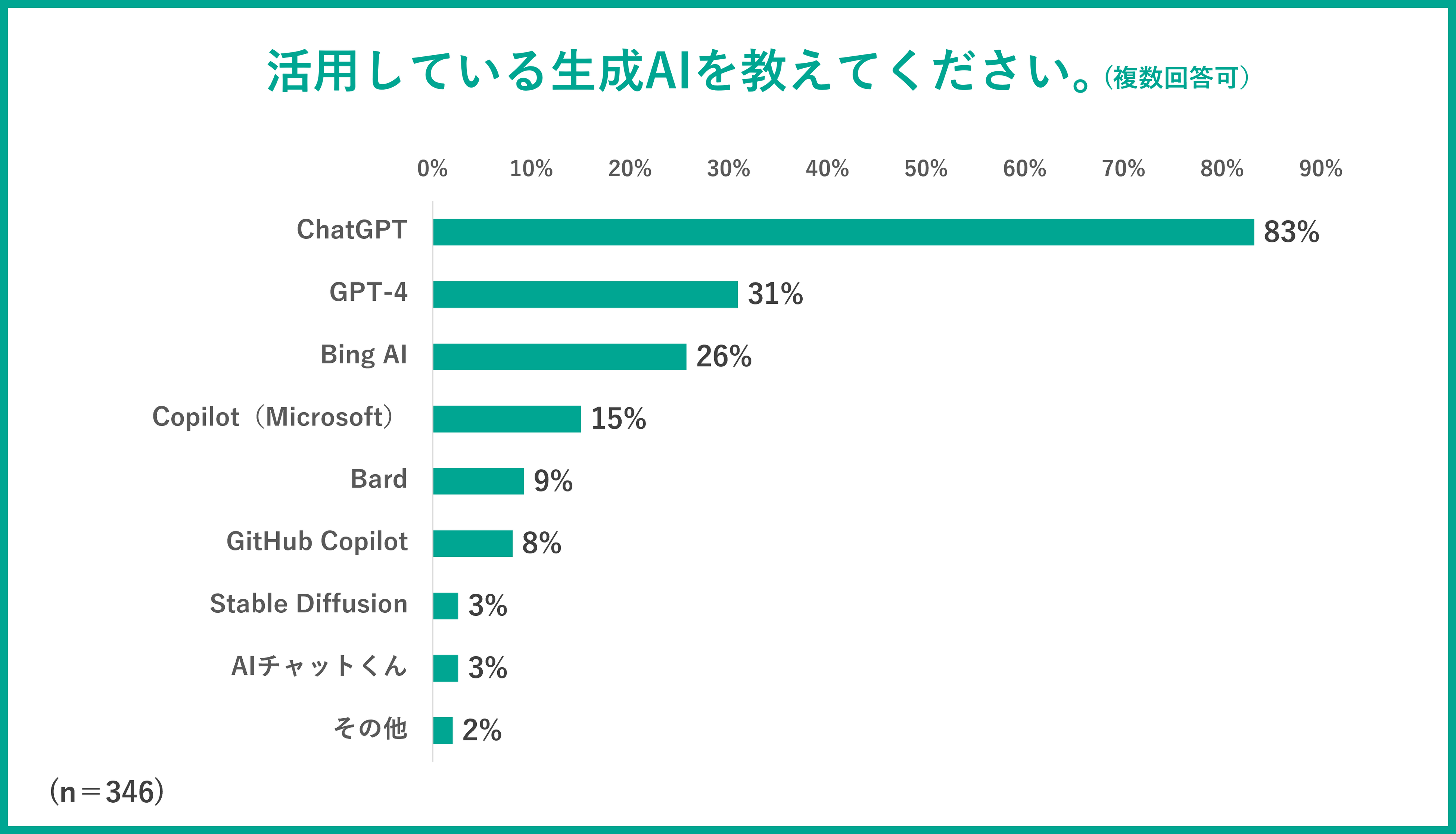 83%で圧倒的多数を占め、「GPT-4」は有料にもかかわらず第2位という結果となりました。