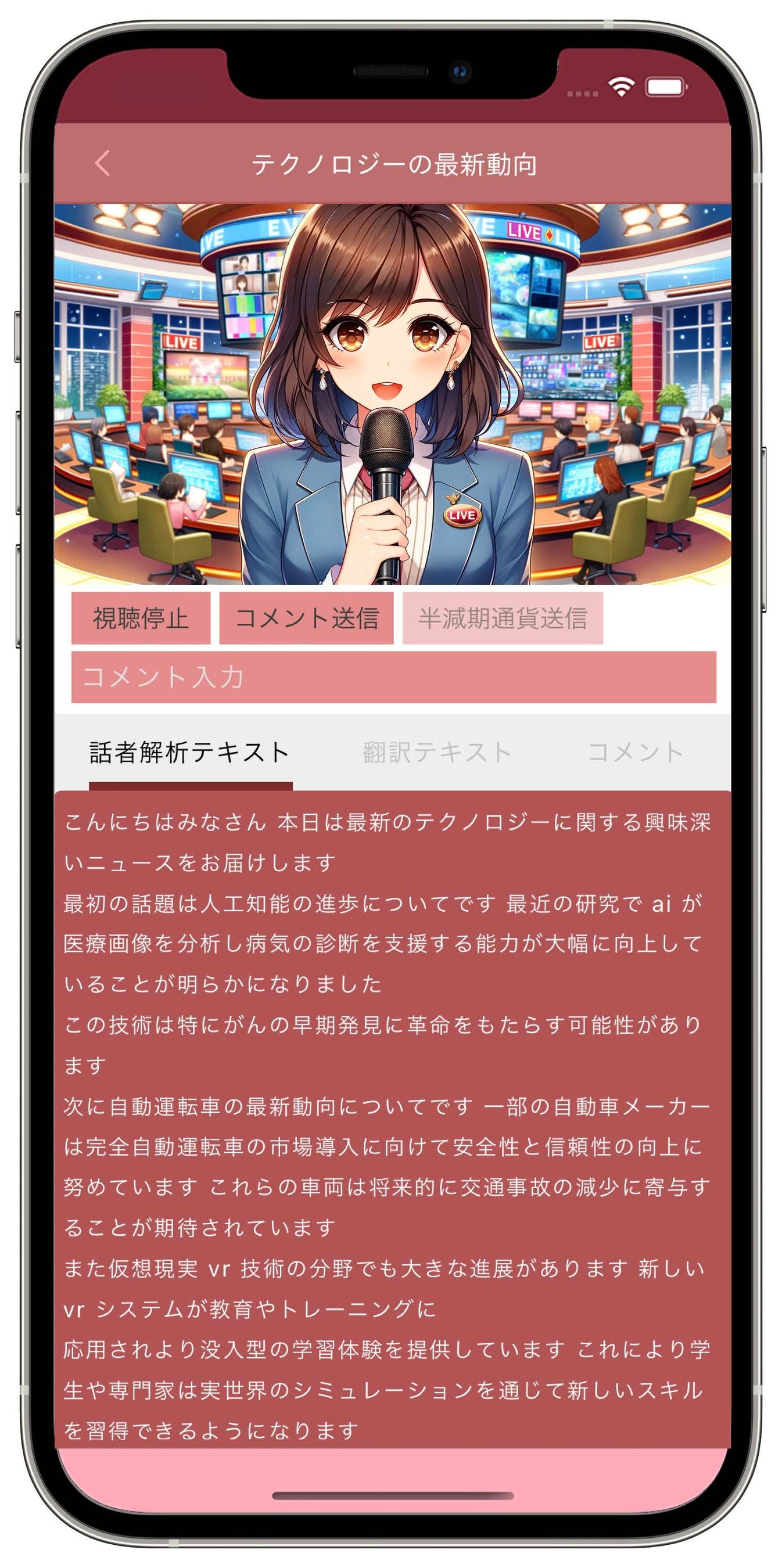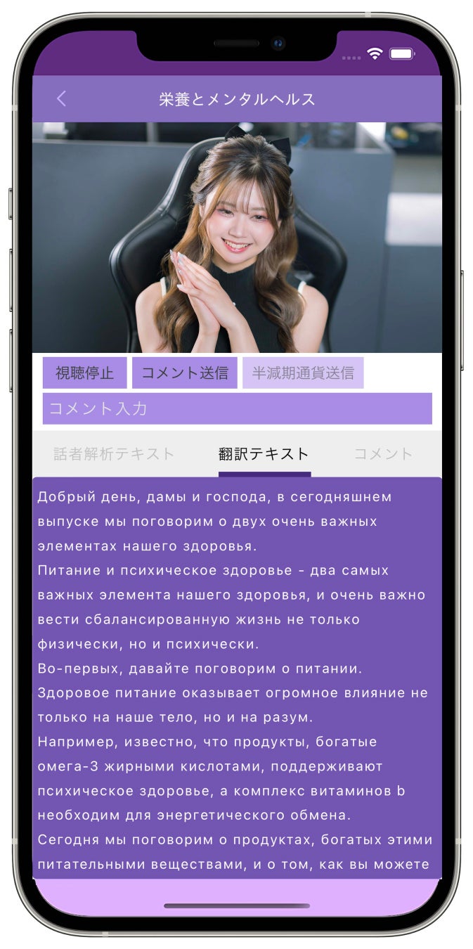 リンゴリクライブを利用することで、配信者のメッセージはリアルタイムで多言語に翻訳され、視聴者に届けられます。コメント機能を通じた視聴者からのリアルタイムフィードバックと半減期通貨の活用は、新しい価値創出を促進し、コミュニケーションを多角的に展開します。これらの機能により、配信者と視聴者間の相互作用を促進し、より包括的なコミュニケーション体験を提供します。