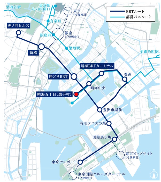 ※BRTの本格運行開始は2022年度以降、環状第2号線本線トンネル開通後の予定です。(出典:東京都ホームページ 東京都都市整備局・京成バス株式会社『都心と臨海地域とを結ぶBRTに関する事業計画』2018年8月改定より)