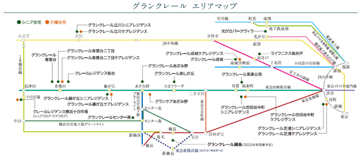 「大いなる安心」という名をもつ、シニアのための住まい「グランクレール」シリーズは、2004年「グランクレールあざみ野」の開業を皮切りに、東京・神奈川で21住宅・1,932室を展開しています。