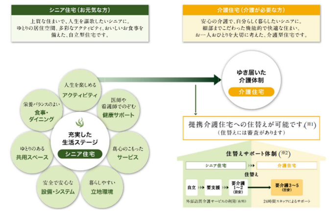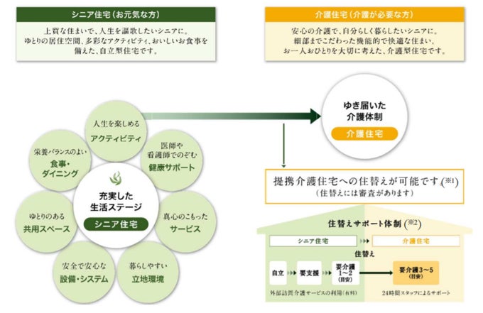 ※ 介護の状況によって、事業者と入居者の合意により介護住宅へ移り住んだ場合、シニア住宅の利用に関する権利は終了します。介護住宅では 1 人あたりの占有面積が減少し、介護住宅が定める費用をお支払いいただきます。