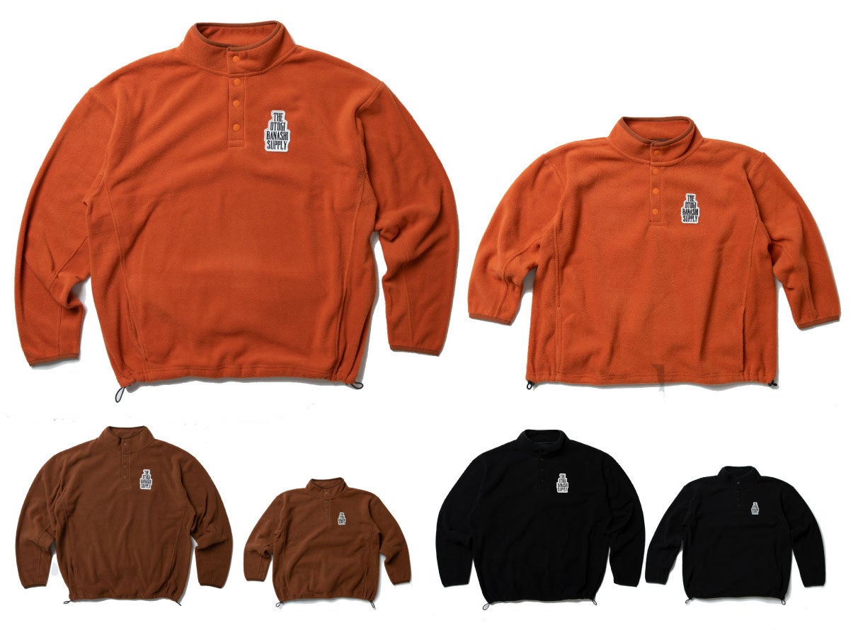 ひと癖ある洋服をフルサイズで展開する話題のブランド「THE OTOGIBANASHI SUPPLY」とトリプル別注したハーフスナップフリースを限定販売。キッズサイズと大人サイズをご用意します!オレンジ・ブラウン・ブラックの3色展開。