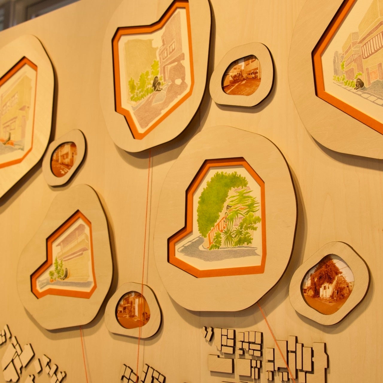住宅街の中で1人で短時間過ごせそうな場を探し、理想の過ごし方を描いています。「第三空間」と呼ばれる場への興味と、コロナ禍を経て変化した「ひとり時間」という文化に着目して研究していました。60年代から続く「おひとりさま文化」はコロナ禍を経て、人と共にいる時間とひとり過ごす時間のバランスがより重視されるようになりました。家に帰る前にちょっといられるような場、コミュニティから短時間離れられる場はもっと必要ではないか?その考えから制作した作品です。