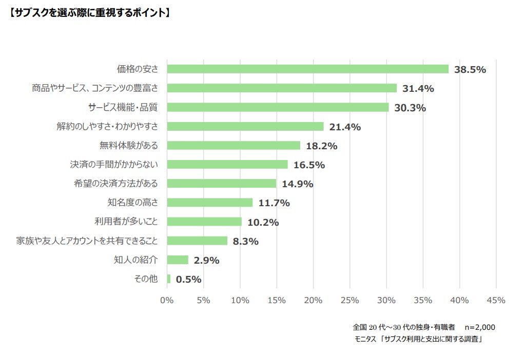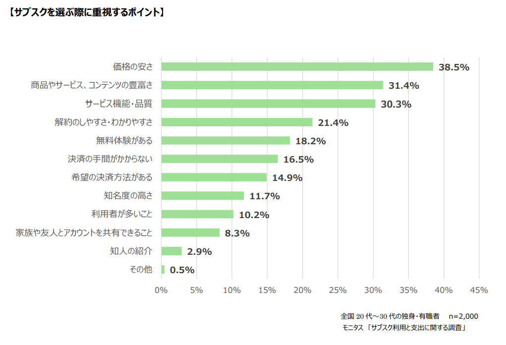 数ある中のサブスクを選ぶ際に重視するポイントは何なのでしょうか。