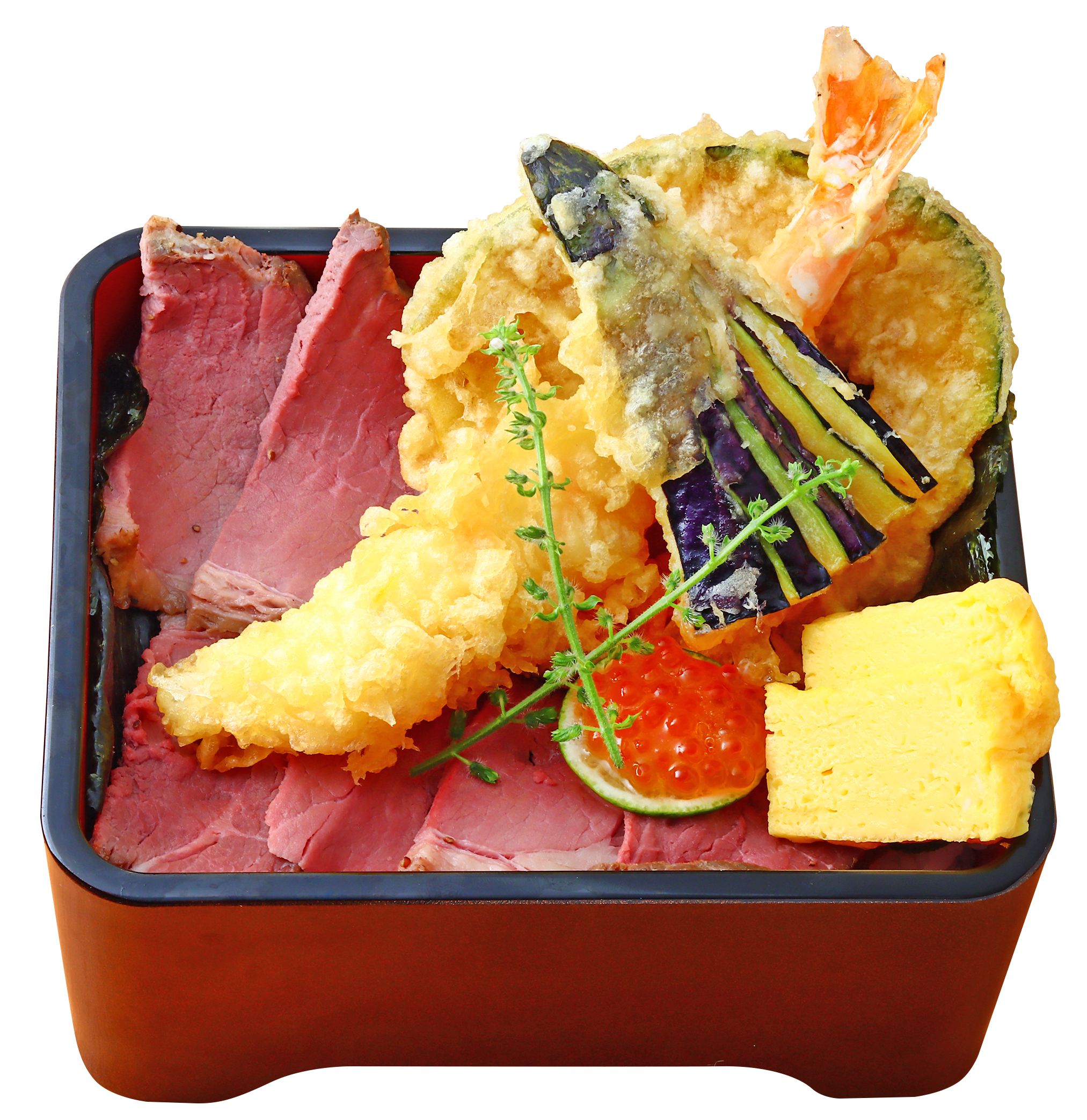 黒毛和牛のローストビーフ天重 3,600円(税別)