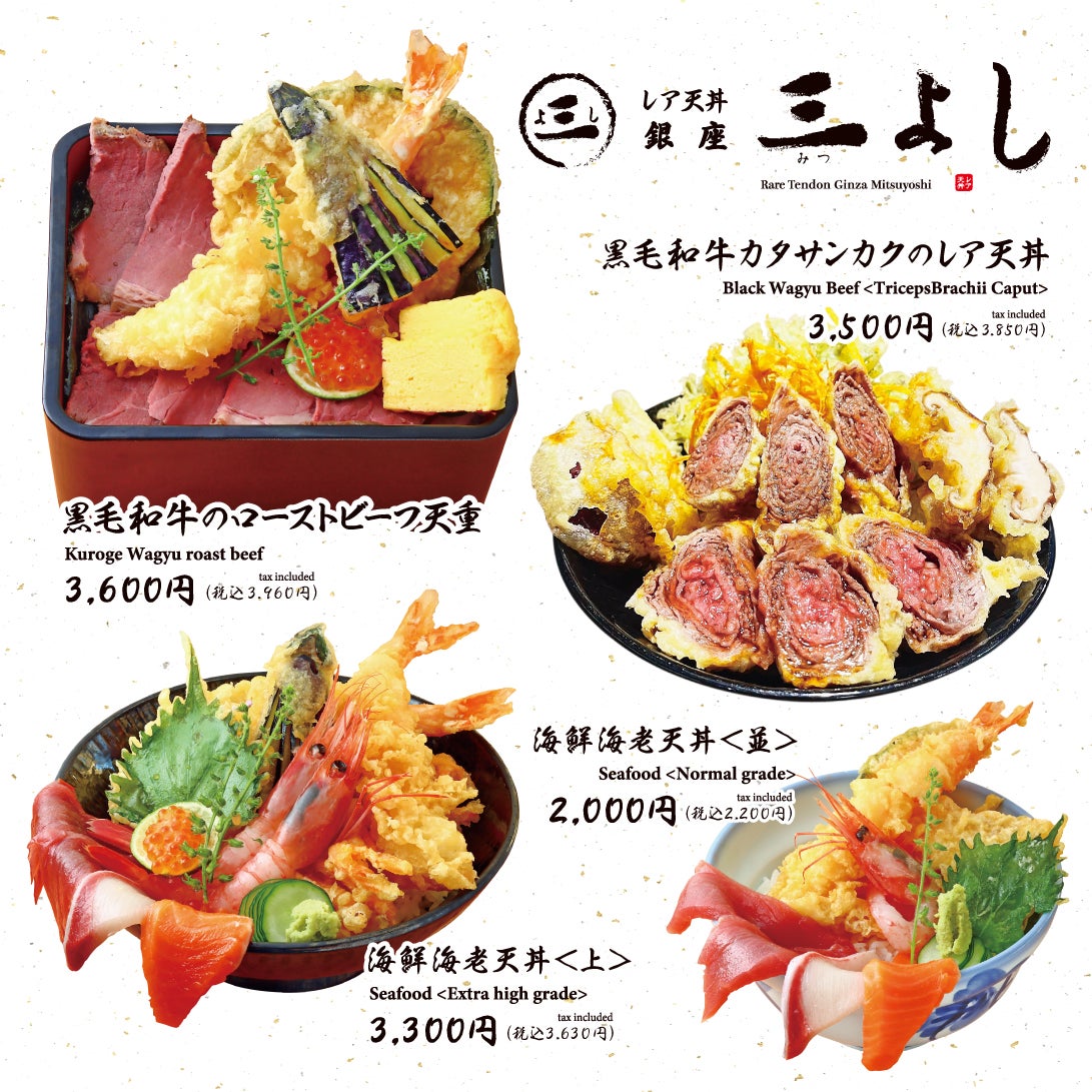 黒毛和牛カタサンカクのレア天丼 3,500円(税別)