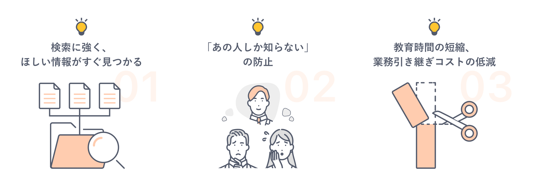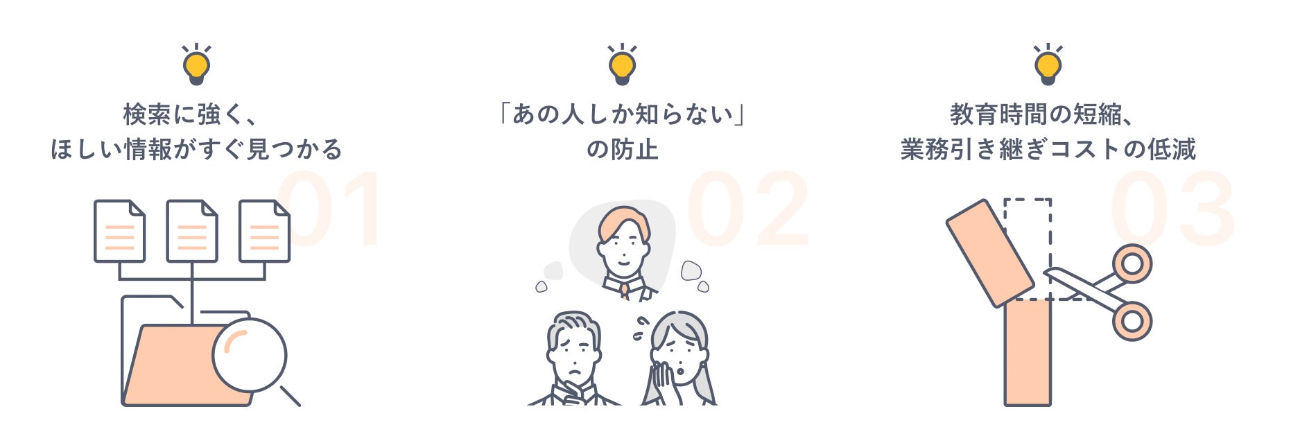 社内マニュアル、手順書、業務ノウハウ、社内FAQ、日報・議事録など、何度も検索するような、ストック型の情報管理に最適です。