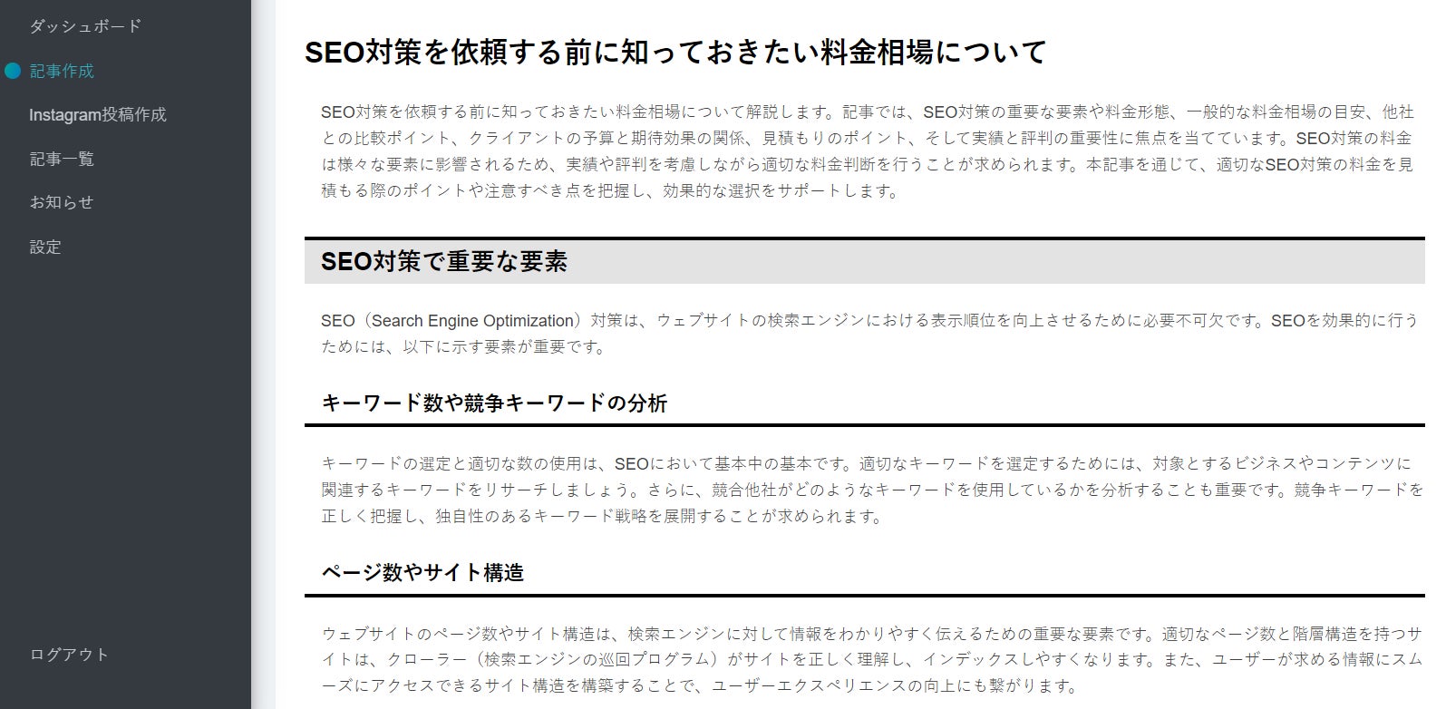 ①SEOに強い長文記事の生成が可能