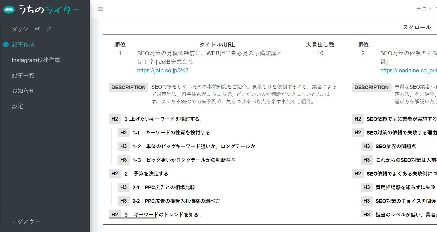 「うちのライター」は、SEOに強い記事を自動生成するAIライティングツールです。