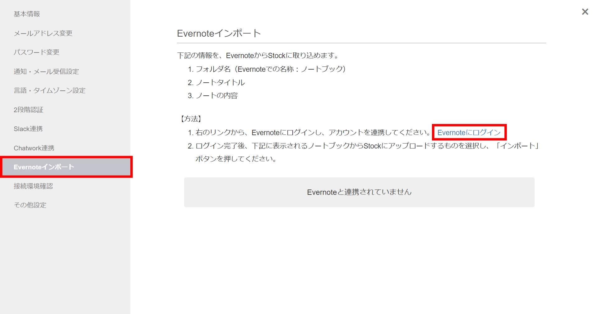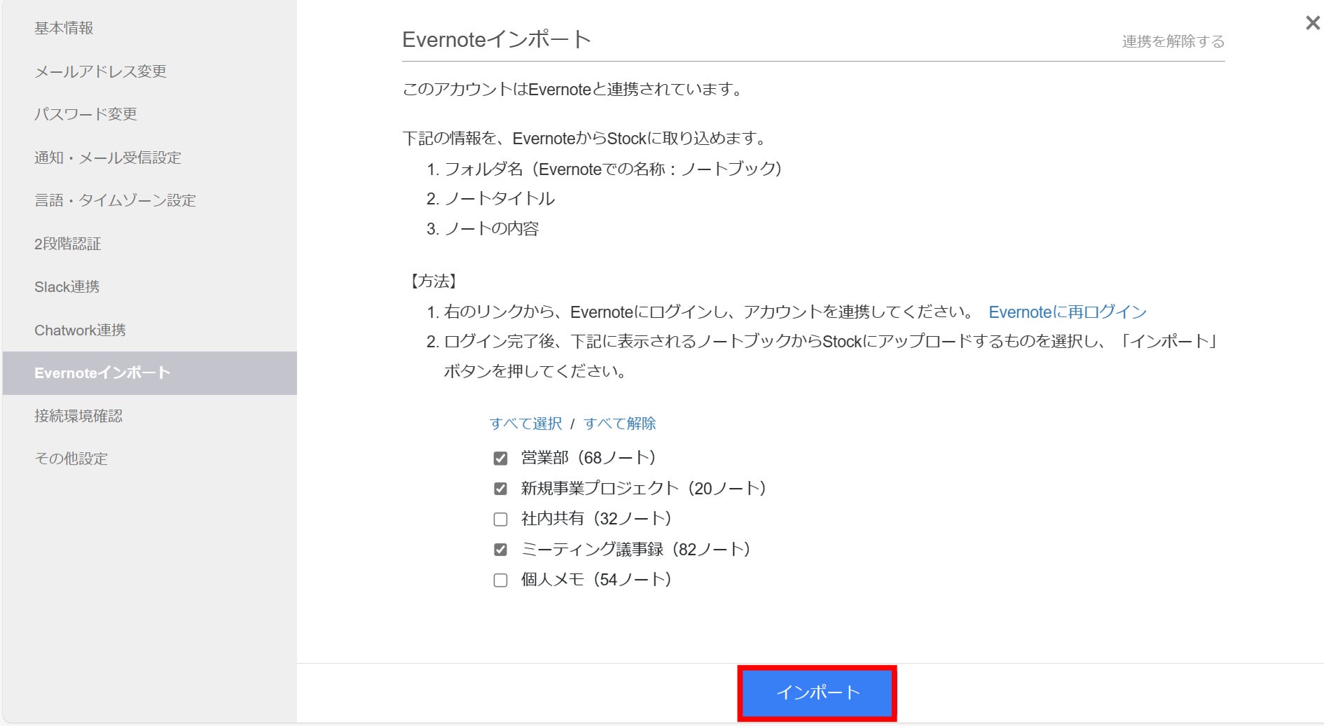 詳しいインポートの方法については、こちらに掲載しています。Evernoteからの移行手順:https://www.stock-app.info/faq/16792.html