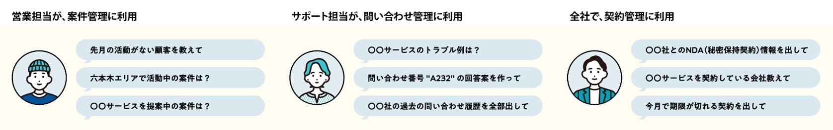 kintone アプリを学習した生成AIボットは様々なシーンで使用が可能。