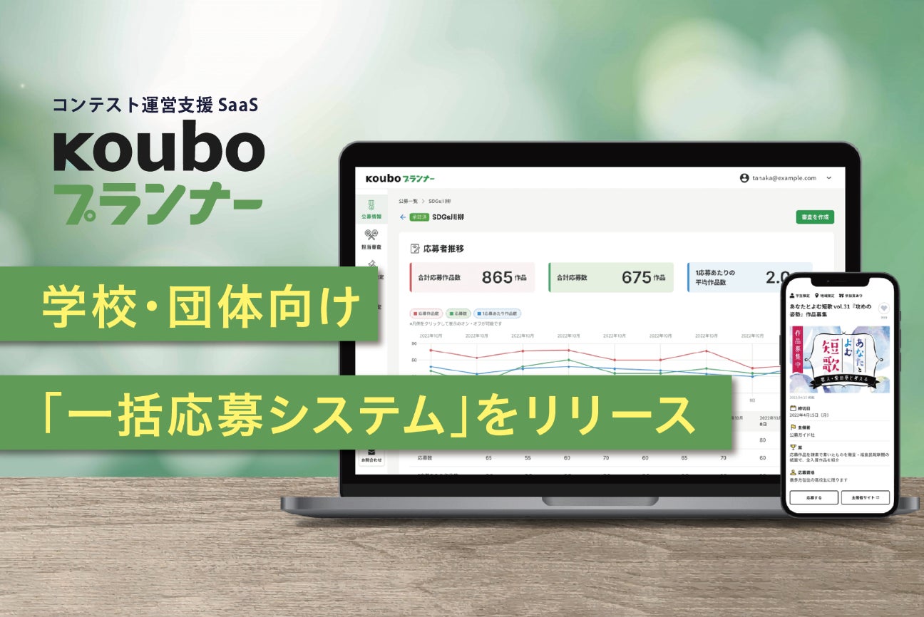 コンテスト運営SaaS『Kouboプランナー』、「学校・団体向け一括応募システム」を提供開始
