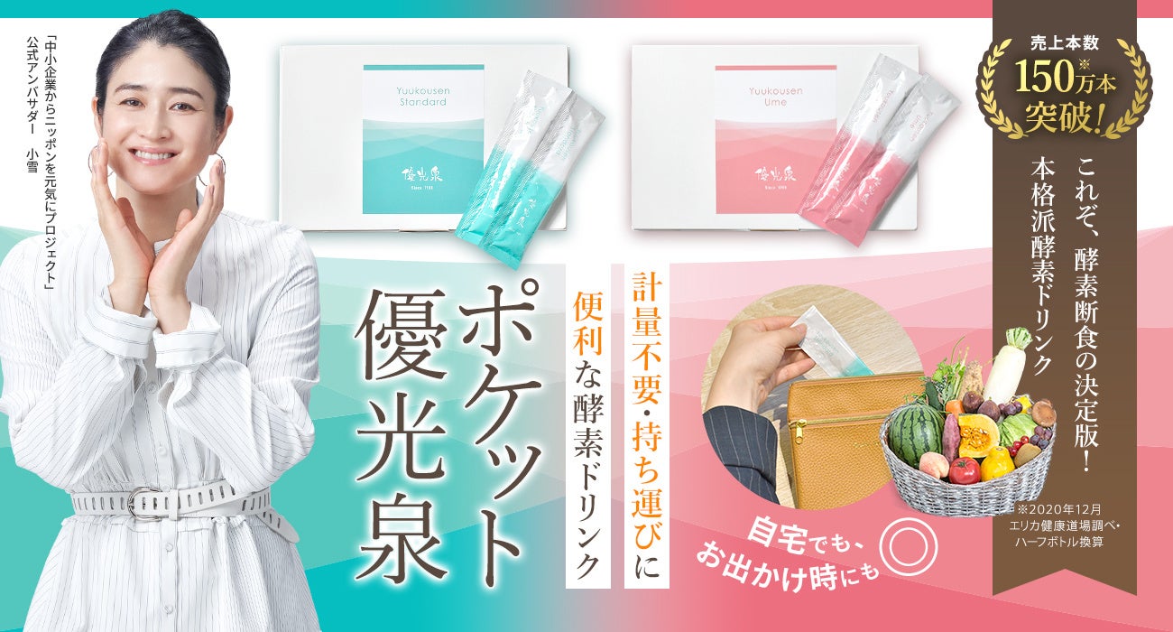 同プロジェクト公式アンバサダーの小雪さんの広告素材を活用し、酵素ドリンクブランド『優光泉』( https://www.danjiki-net.jp/ )の認知度を高め、公式WEBサイトをはじめ、SNSやWEB広告等でプロモーションを開始します。