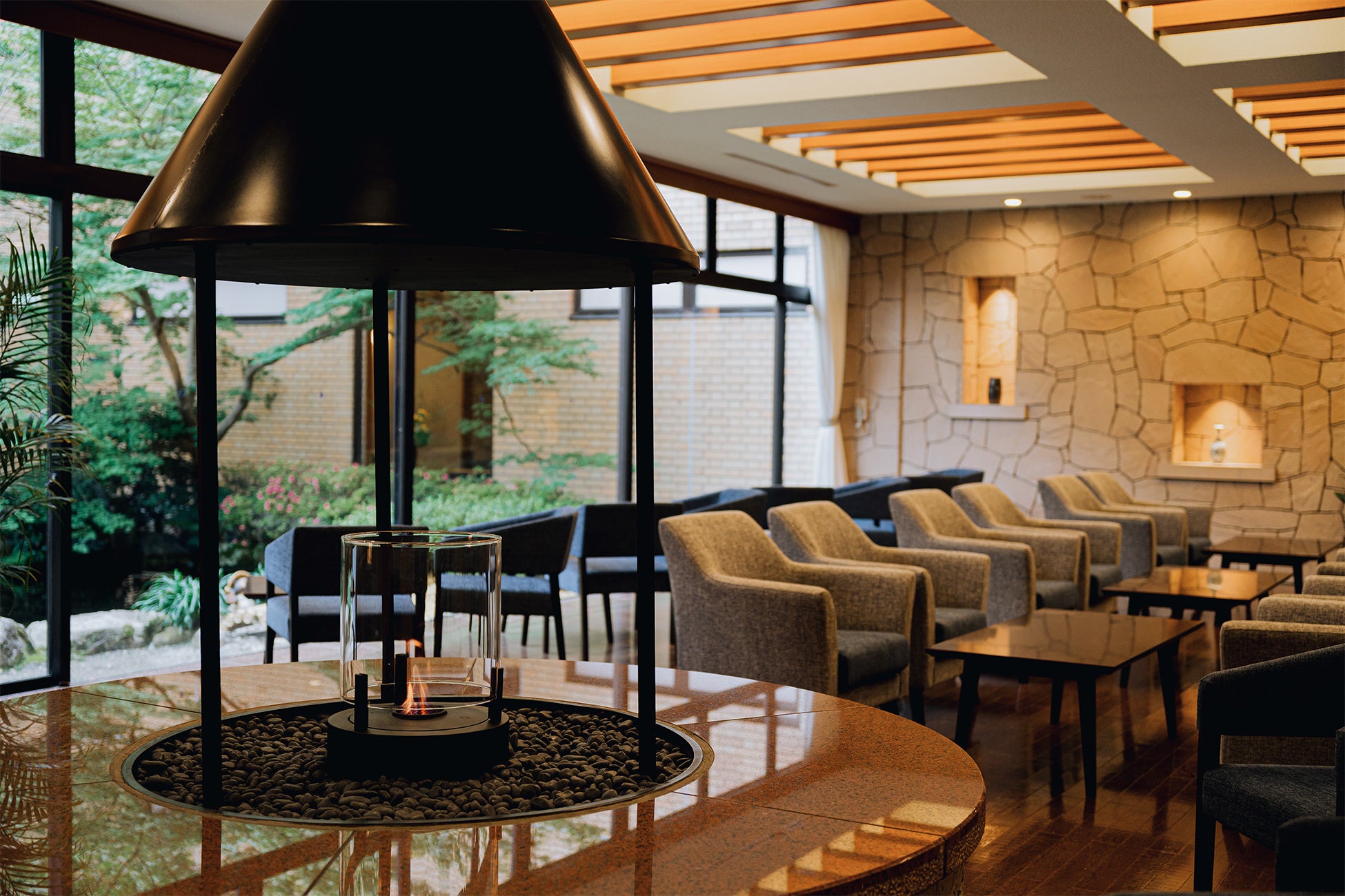ロビーには環境にやさしいバイオエタノールを使用した暖炉があります。お食事やお風呂の後にゆらめく炎をながめながらゆったりとした時間を過ごされてはいかがでしょうか。