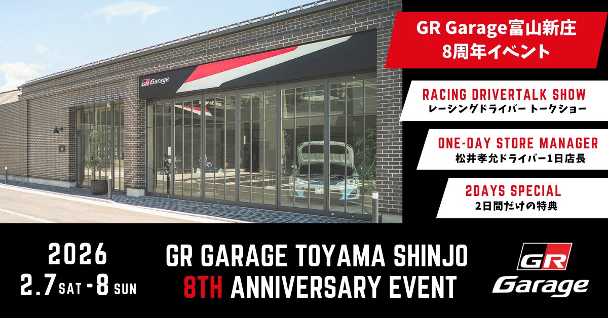 ネッツトヨタ富山株式会社(本社:富山県富山市)のトヨタのスポーツブランド“GR”の専門店 GR Garage 富山新庄 は、日頃の感謝を込めて 開業8周年記念イベント を2026年2月7日(土)・8日(日)の2日間にわたり開催いたします。