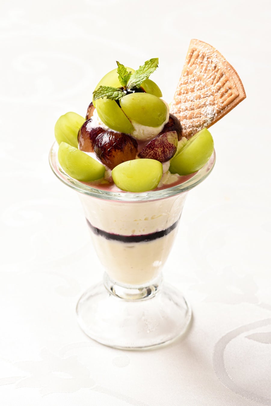 (岡山県産シャインマスカット“晴王”のパフェ)