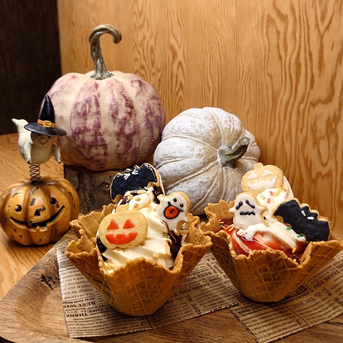 10月は、おばけやかぼちゃ、こうもりの可愛らしいアイシングクッキーがトッピングに加わります!このクッキーは萌木の村ROCKパティシエ前園蘭の手作り!みんなでデコって楽しみましょう!(~10月31日)