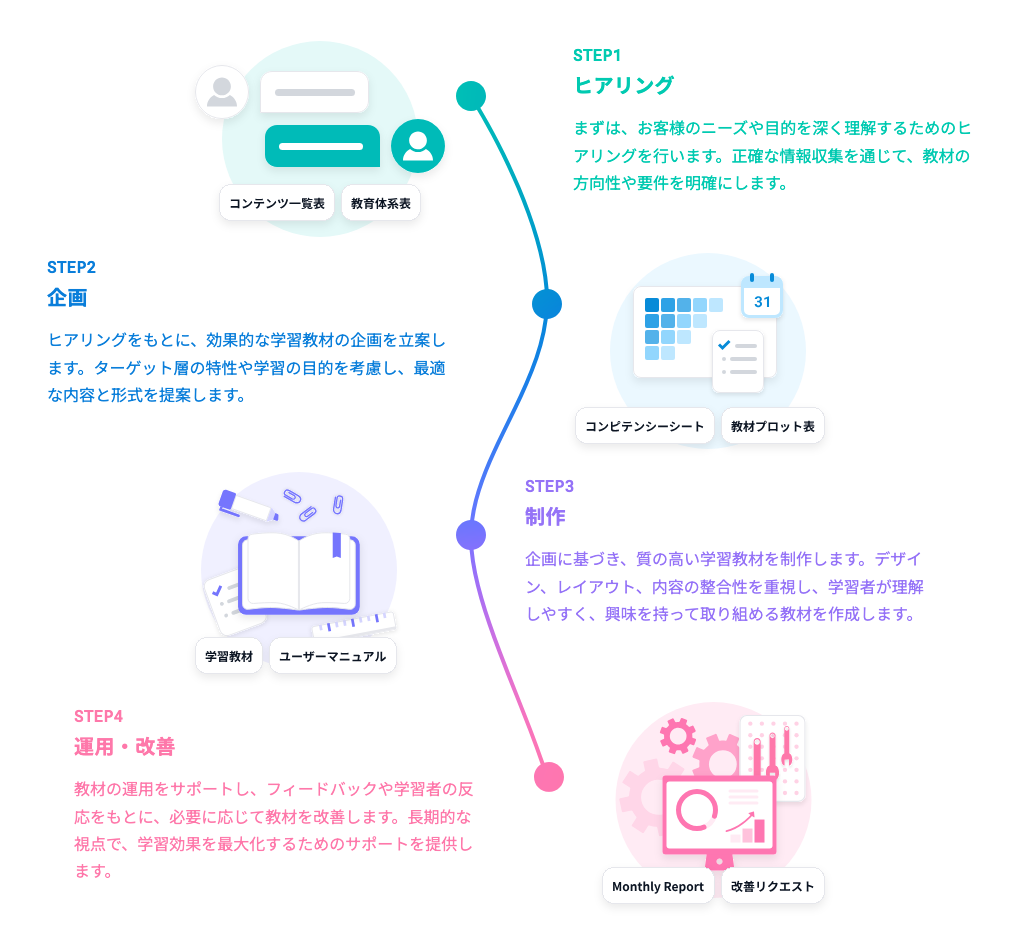 Workschoolは「一般的なコンテンツだと物足りないが、自分たちオリジナルで学習コンテンツを制作するリソースもない」企業を対象に、オンライン学習コンテンツの企画・撮影・制作までをワンストップで支援させていただいております!