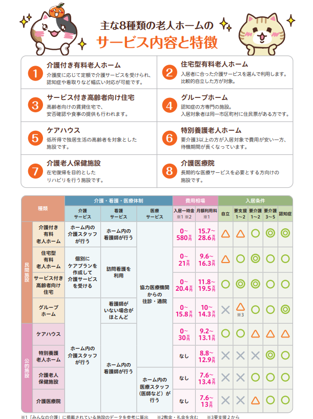 - 内容紹介①主要老人ホームのサービス内容と特徴