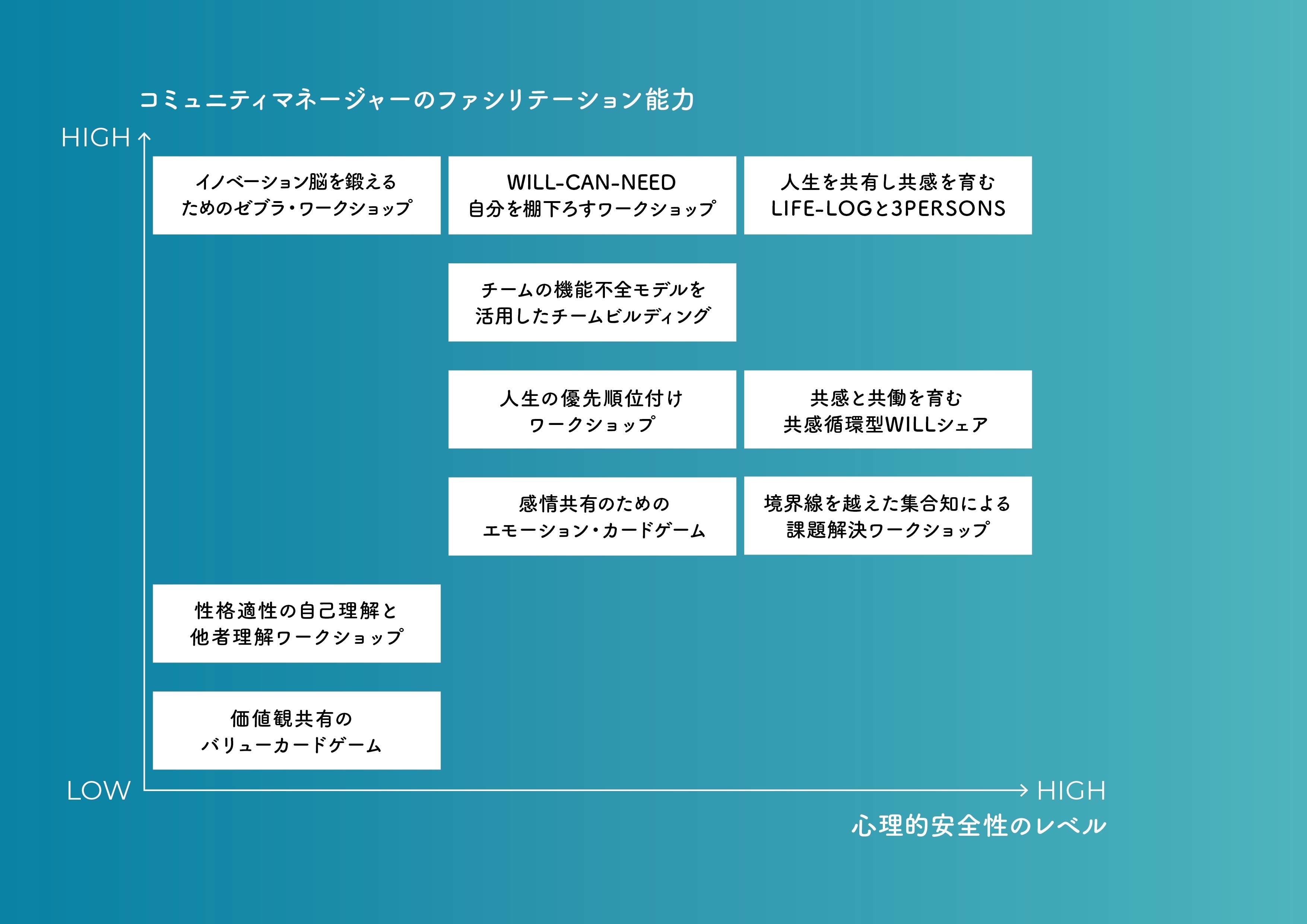 コミュニティマネージャーは、社員同士のつながりを育む「場」において、コンテンツを進行するファシリテーションを担います。