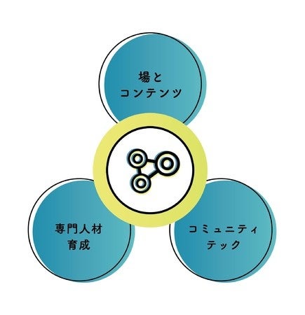 ます。①場とコンテンツ、②専門人材育成、③コミュニティテック、の3