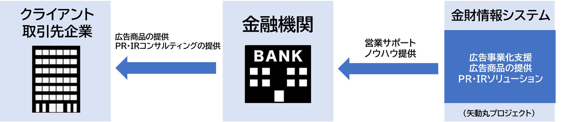 株式会社矢動丸プロジェクト(本社:大阪市北区、代表取締役社長:前田高明)と株式会社金財情報システム(本社:東京都新宿区、代表取締役社長:藤森雅)は、金融機関に対して広告(PR・IR)ソリューションを共同で提供することを目的に2022年2月1日に業務提携し、「広告事業化支援サービス」の提供を開始しました。