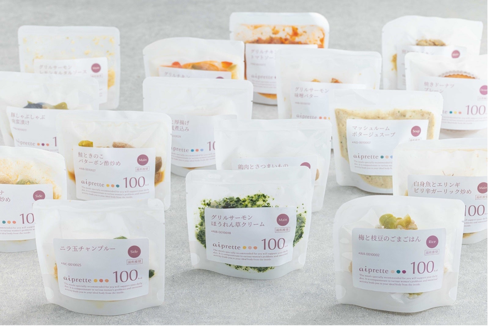 「ごはん、パン、主菜、副菜、スープ、デザート」の全6種の中から様々なメニューを選べ、全品「100kcal」なのでカロリー計算も簡単!すべて100円(税込)とお財布にも優しい価格です。