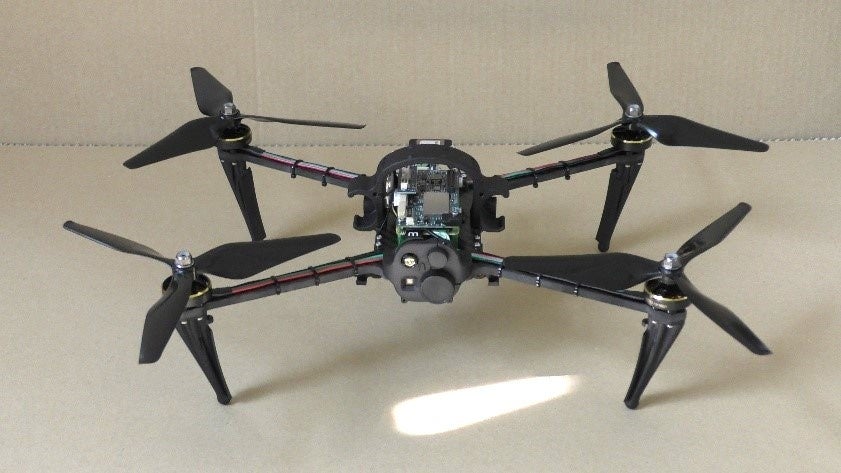 AI画像解析用フライトコントローラー(Modal AI社製 VOXL2)を搭載したドローンにより、GPSが入らない屋内での自動航行を実現します。