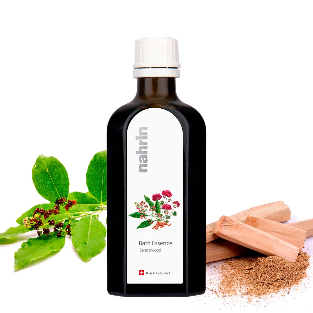 ナリンのバスエッセンス サンダルウッドにはサンダルウッドと相性の良いゼラニウムとローズマリーを配合しています。落ち着いた気分に浸りながらすっきり感を堪能いただけます。