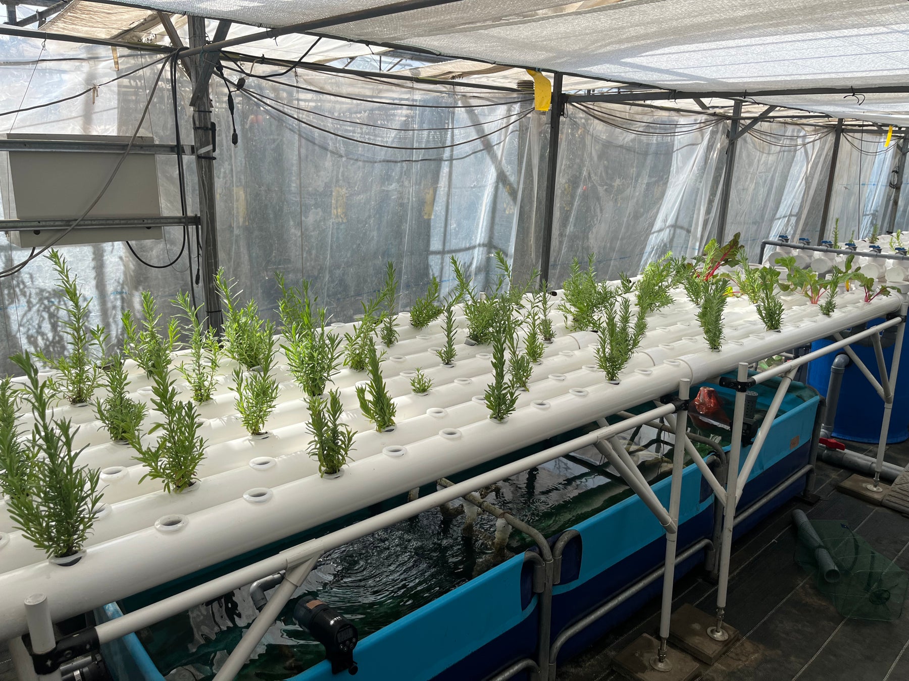 アクアポニックスは水産養殖と水耕栽培を組み合わせることで効率的な資源循環を行っており、魚やエビのエサ由来の窒素を野菜の肥料として使用しています。