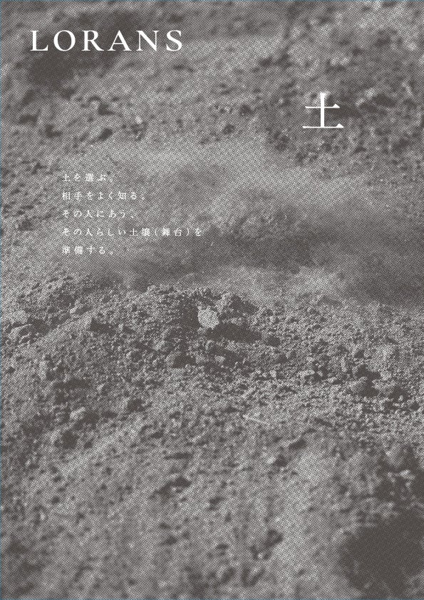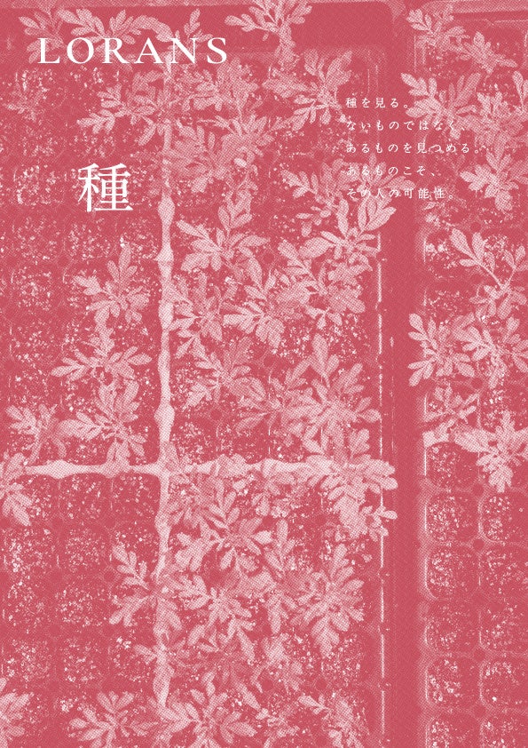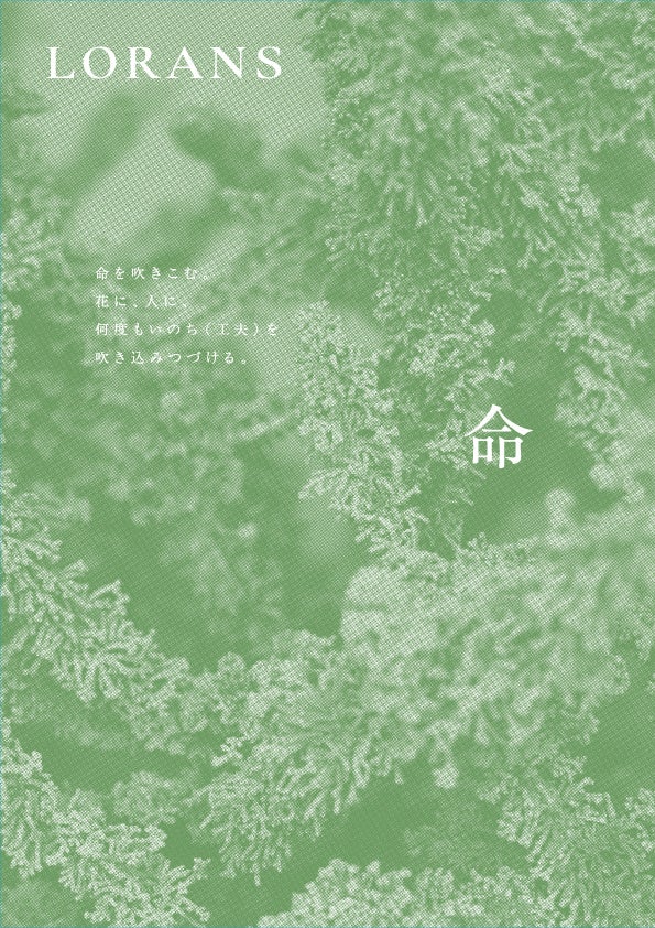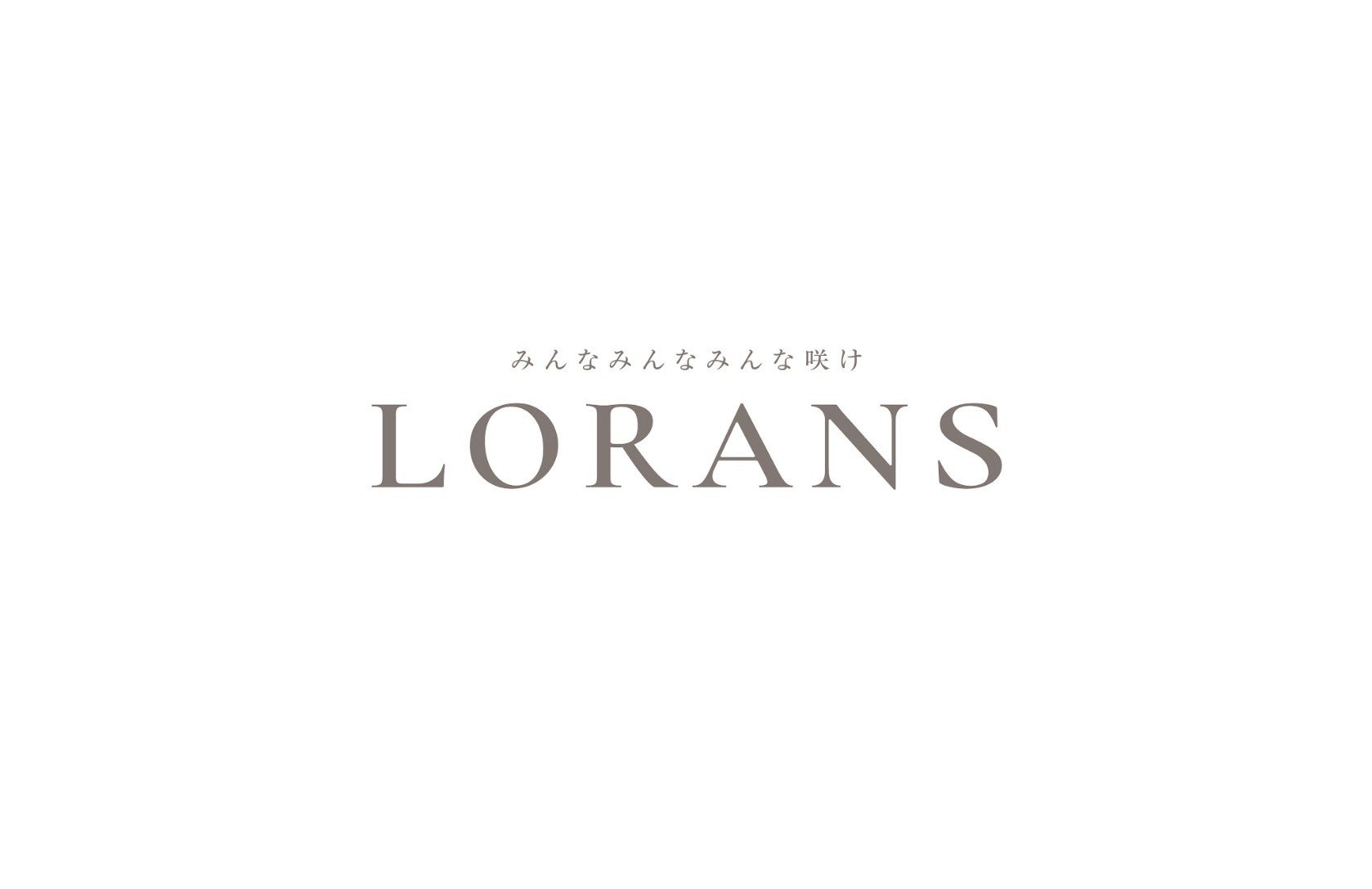 LORANS旧ロゴの持つ上質さはキープしつつ、欧文フォントの「Cormorant Garamond」をベースに全体の曲線を美しく整え、平体をかけ、文字間を開けることで、花や人の生命力を信じるブランドロゴとしての強度を高めました。