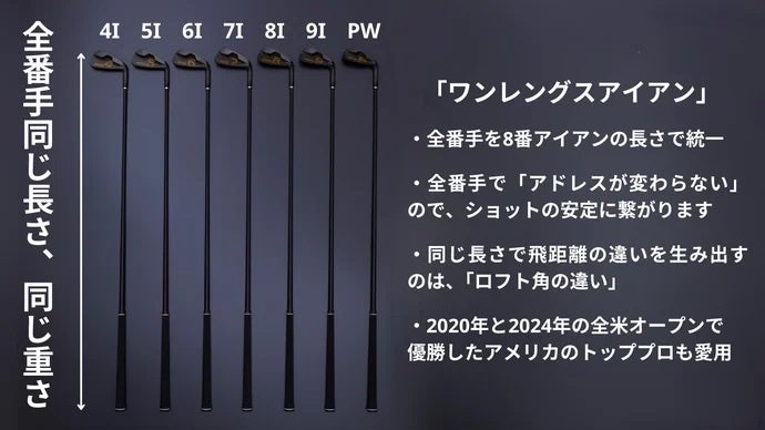 NOOGのアイアンは、全番手同じ長さで統一された「ワンレングス」です。