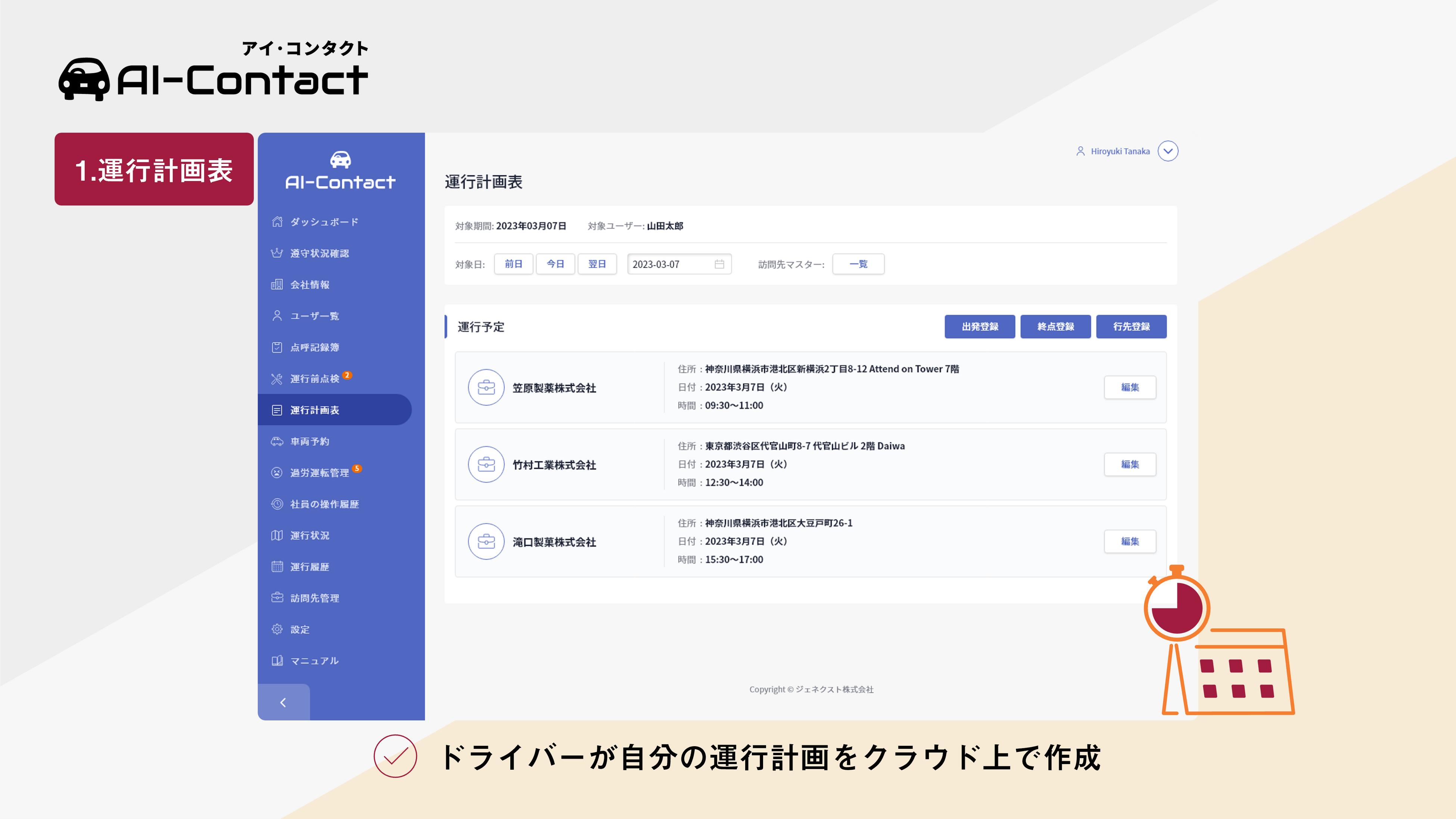 ドライバーが自身の運行計画をクラウド上で作成できる機能です。