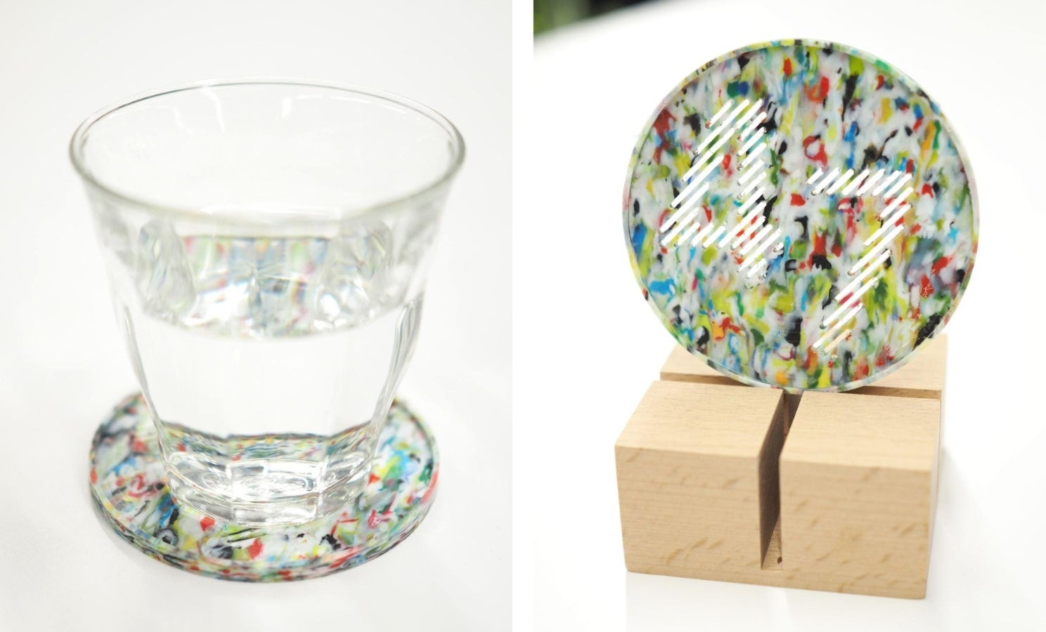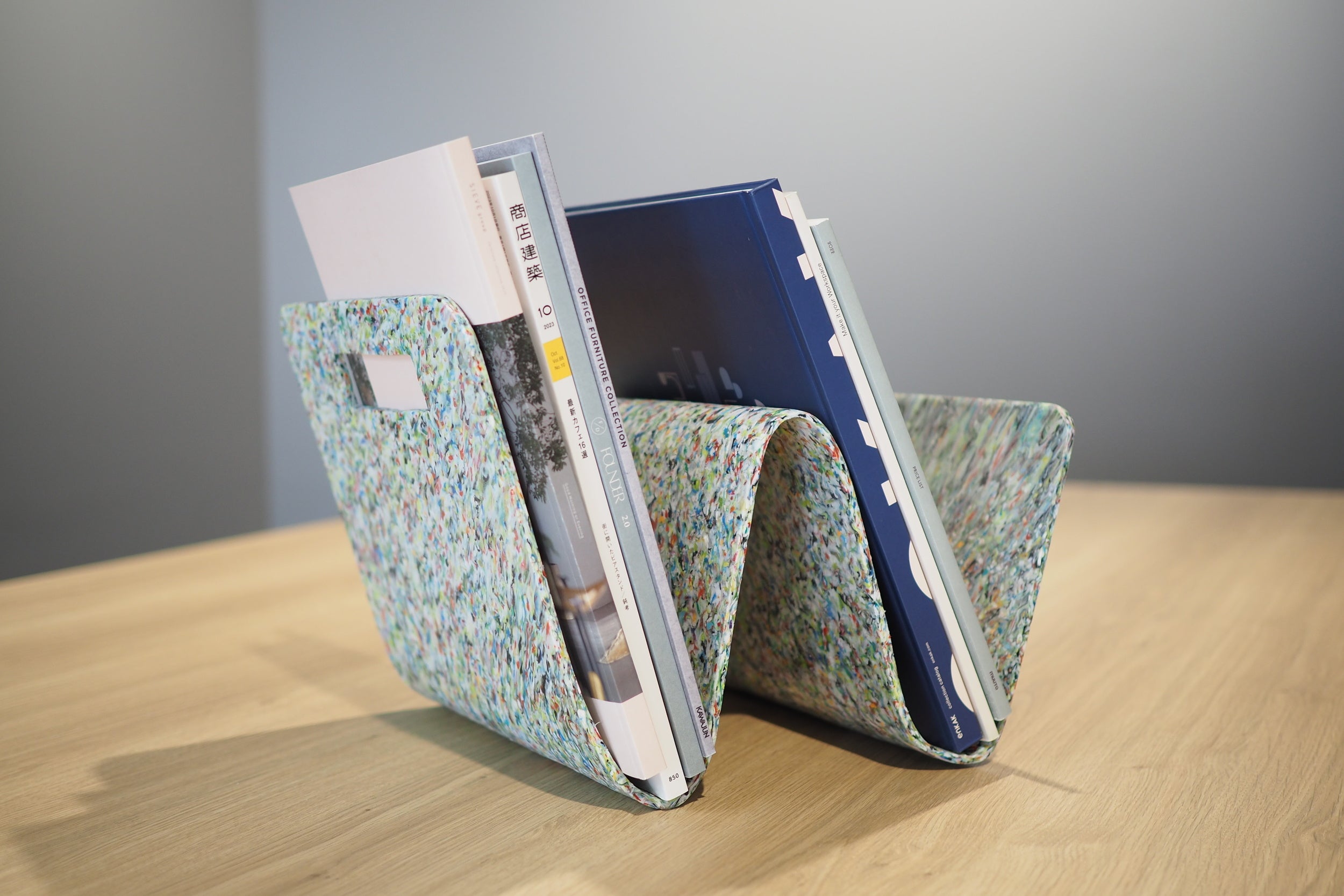 当社のオフィスで出たペットボトルゴミ(キャップ)を使い、REMAREにてマガジンラック・バインダー・コースターを制作いただきました。