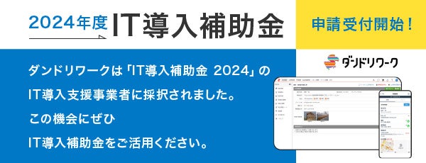 この度、「ダンドリワーク」が「IT導入補助金2024」の対象ツールとして認定されたことにより、この制度を活用した「ダンドリワーク」の導入が可能です。ぜひこの機会に「ダンドリワーク」を活用したDXをご検討ください。