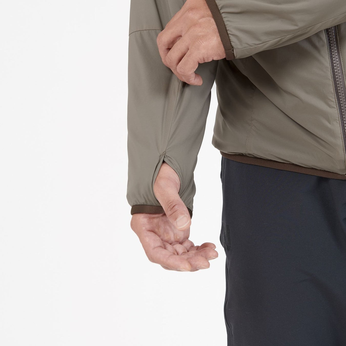 超撥水ウィンドシェル素材の「ブリーズバリヤー®︎」と、起毛メッシュ素材の「スルー ウォーム®︎」という、2つの独自素材を使用したアクティブインシュレーションジャケット。