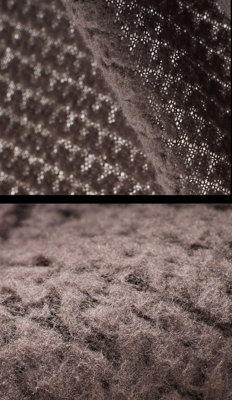 保温性と吸水性を合わせ持ち、且つ、並外れた通気性を備えます。生地の裏面はさらりとしており、着心地の良さは抜群。
