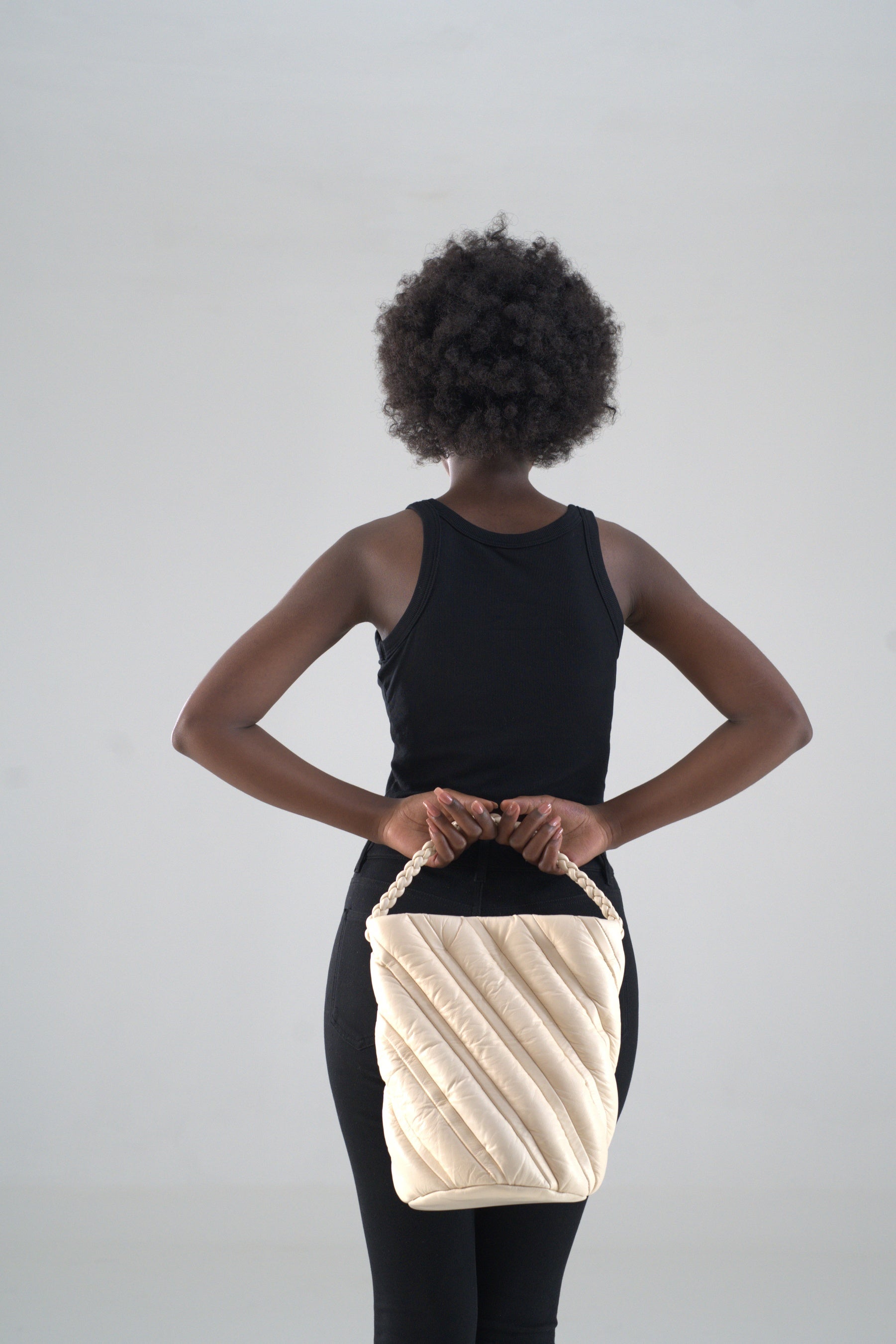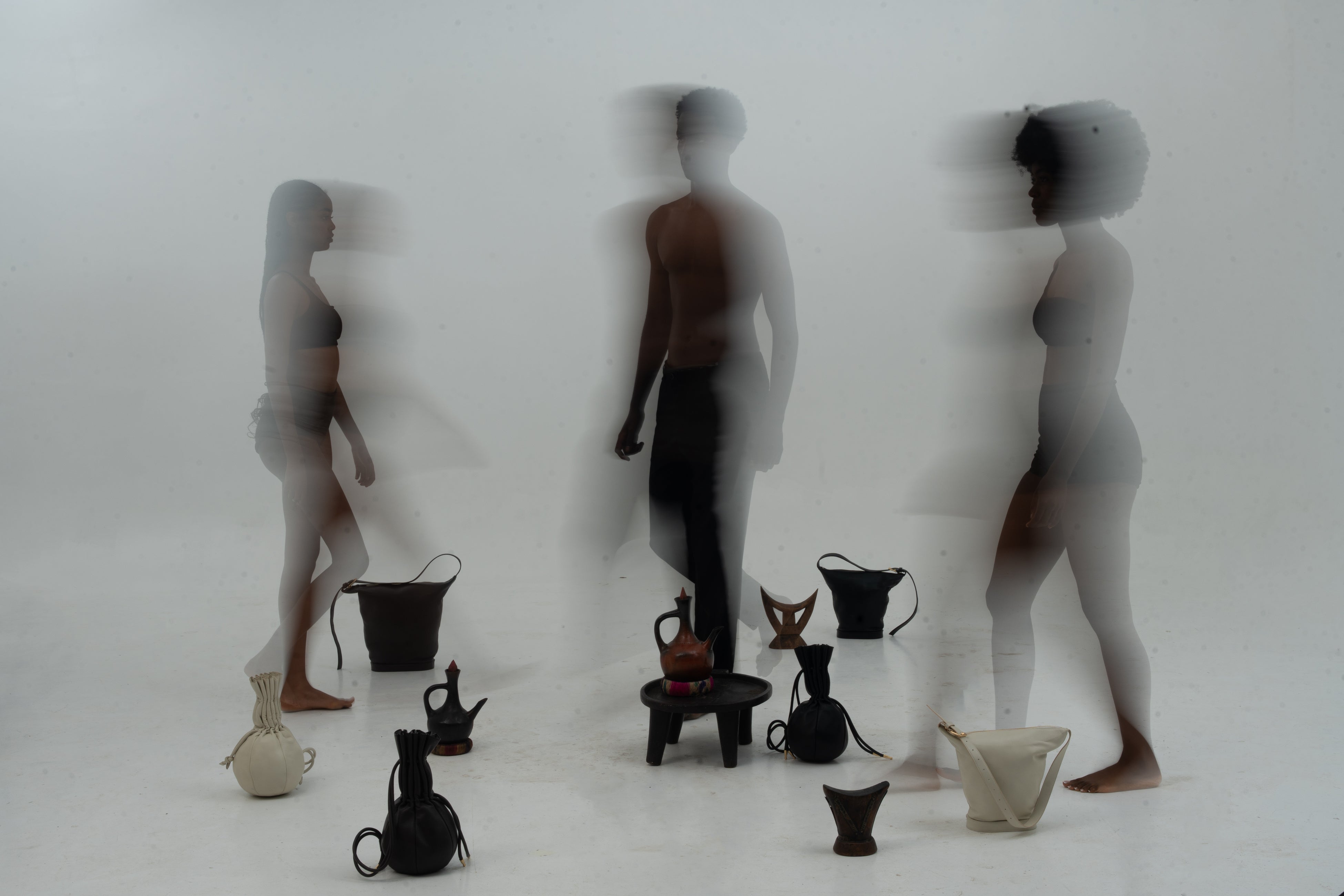 第一弾の新作コレクションは、アフリカで長く使われ、受け継がれてきた生活の道具や工芸品のかたちを起点にしています。 長い時間をかけて磨かれてきた造形を、現代のプロダクトとして組み直しました。 一見ミニマルで大胆なフォルムでありながら、細部には手仕事の細かさが光ります。 素材はエチオピア産シープスキンを贅沢に使用し、軽さと柔らかさ、強度を両立しました。
