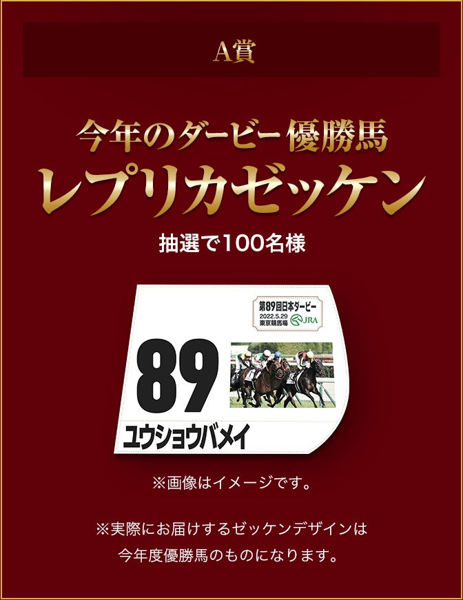 【A 賞】 今年のダービー優勝馬 レプリカゼッケン / 100名様